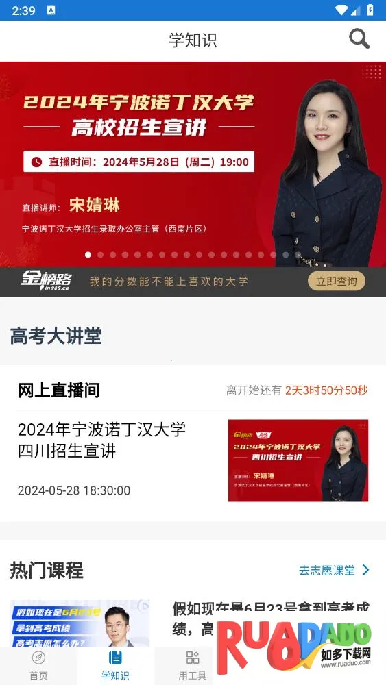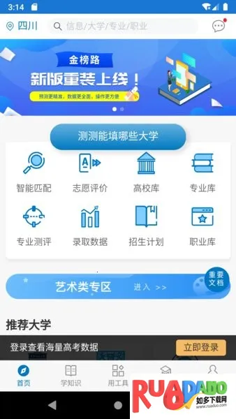 金榜路志愿填报app由成都金榜路教育科技有限公司研发,适合高三学生和家长。它囊括高校升学信息,可智能匹配学校专业,还有专业测评、志愿方案分析等功能,支持多省份,数据权威可靠。