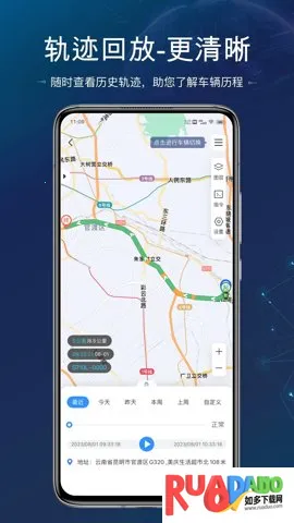 4、轨迹回放便捷:车辆历史轨迹数据存于云服务器,可导出并随时查看,方便了解行驶路线和历史行程。