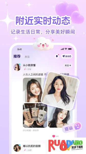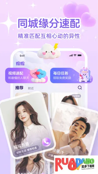 绵绵2025官方最新版本是多元化手机社交平台,有多种配对、搜索及互动沟通模式,热门话题及时更新。注册填问卷推高契合对象,有私密共写空间等玩法,还支持同城社交,功能丰富且注重安全与隐私。