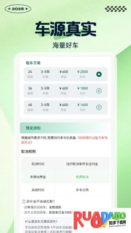 1、车源丰富:整合海量网约车资源,覆盖新车与二手车,有充足选择空间,满足多类用户需求。