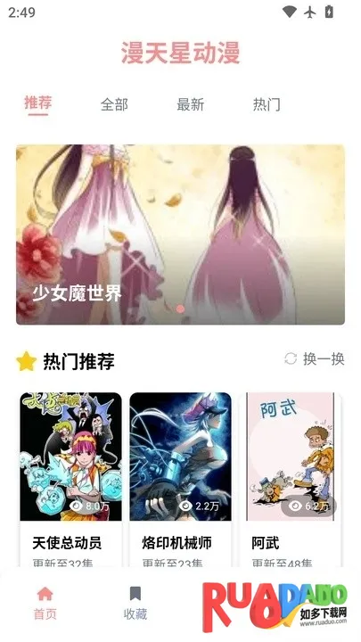 1、漫天星动漫2025是专为动漫爱好者打造的追番平台,汇聚海内外正版动画资源,从经典到热门,从日漫国创到欧美佳作,提供高清流畅观影体验。