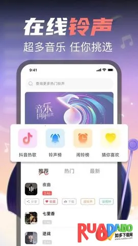 4、基于智能算法精准推荐音乐,实时更新各类音乐榜单,还能一键设置铃声,简化操作流程,为用户提供便捷、个性化的音乐体验。