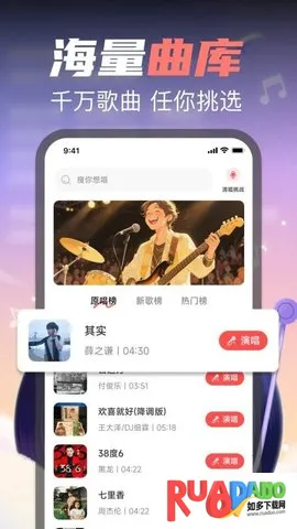 1、海量曲库:涵盖流行、摇滚、古典、民谣等多种风格,经典老歌与最新单曲应有尽有,全方位满足听歌与演唱需求。