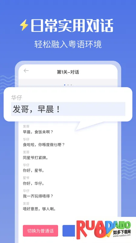 4、入门轻松高效,是免费零基础学粤语的app,10分钟学会日常粤语,助力用户快速开口说粤语。