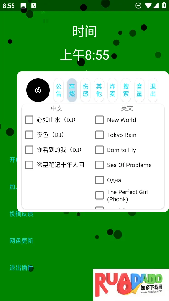 1、音乐插件资源丰富,涵盖动感、抒情、民谣等全风格音频,兼顾流行新歌与怀旧金曲,能满足不同用户的听歌需求。