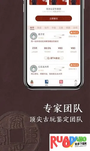 1、权威专家团队坐镇,行业专家在线鉴定,结果专业可靠,还有知名鉴宝大师等入驻,可与大师零距离交流。