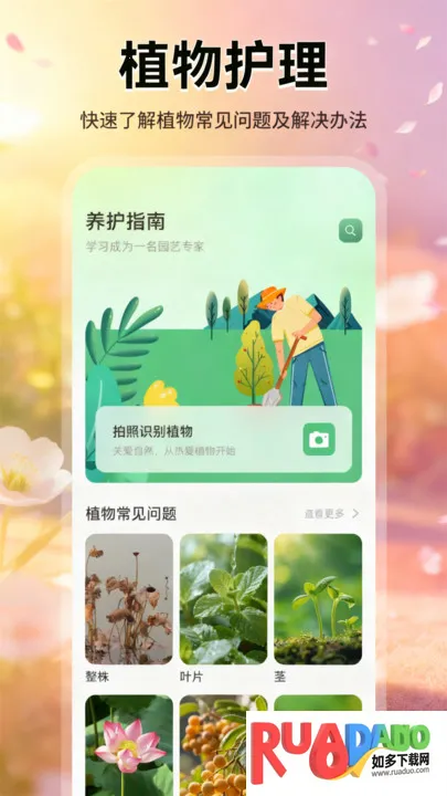1、它是学习植物知识的好帮手,能助力用户了解植物常见问题、养护技巧及信息,学习成为园艺专家,轻松打理身边花草。