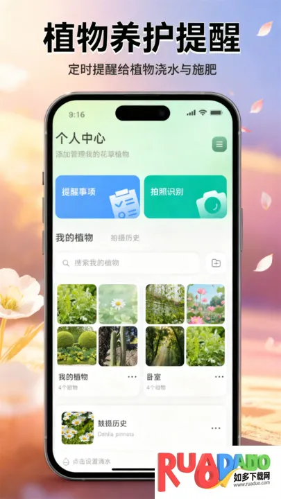 2、养护提醒贴心:定时提醒给植物浇水与施肥,避免因遗忘影响植物生长,让植物养护更省心。