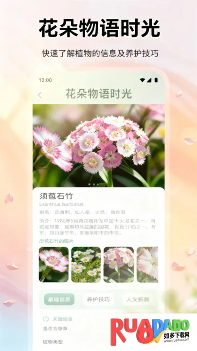 3、信息涵盖面广:不仅有植物基础信息,还涵盖养护技巧和人文拓展,如植物的别名、市花身份等,是学习植物知识的优质平台。
