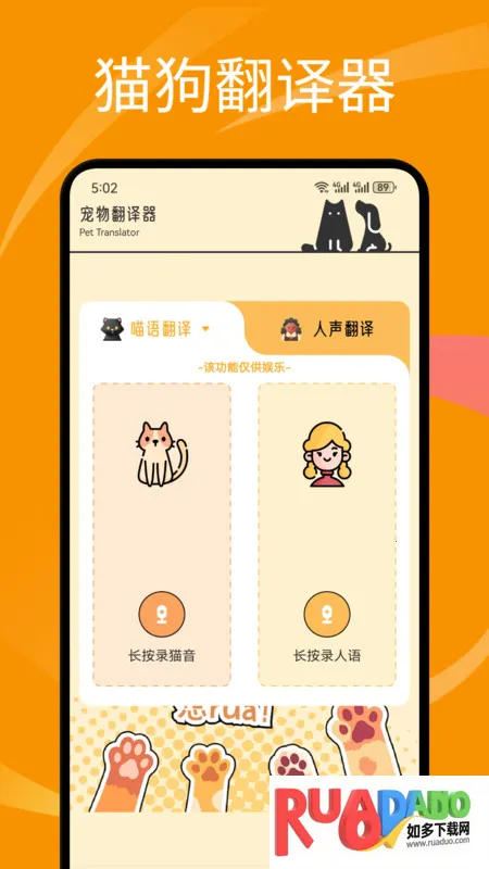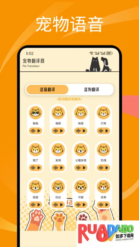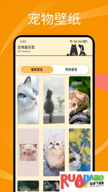 1、它能随时翻译猫语或狗语,让你和宠物交流更顺畅,还提供精彩的宠物壁纸,可实时找到喜欢的壁纸。