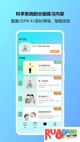 4、它会根据用户情况自动生成个性化学习计划,课程采用渐进式关卡设计,提供丰富口语训练课程资源,采用虚拟人交互模式,让学习更高效、生动有趣。