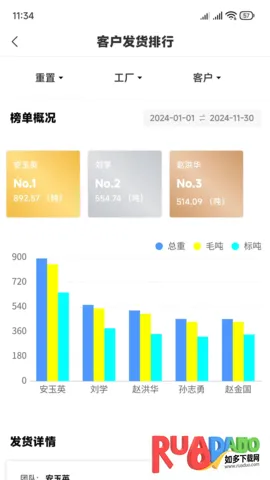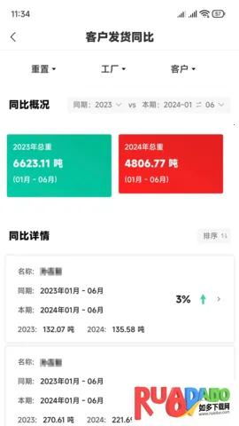 4、清晰直观:有详细的客户资料、同比信息、客户发货排行及统计报表,应用界面清晰简洁,让发货数据信息一目了然。