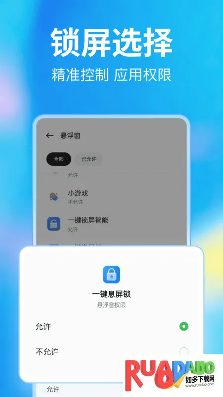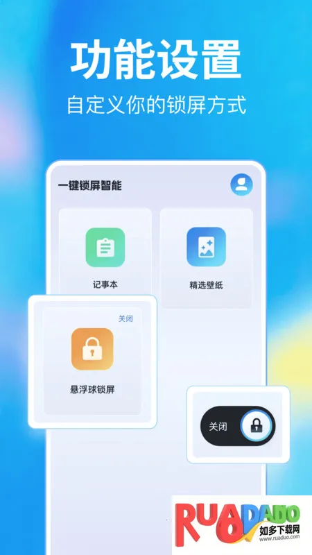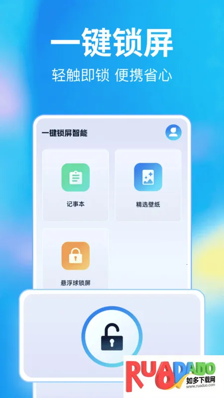 1、操作便捷又高效,极简悬浮球控件设计,轻触即可锁定屏幕,节省时间,告别繁琐操作,提升日常使用效率。