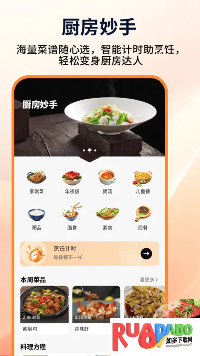 2、海量菜谱支持:拥有海量菜谱,涵盖多种分类,搭配智能计时助烹饪,菜谱分类丰富且细致,覆盖多种饮食场景,让烹饪更轻松,轻松变身厨房达人。