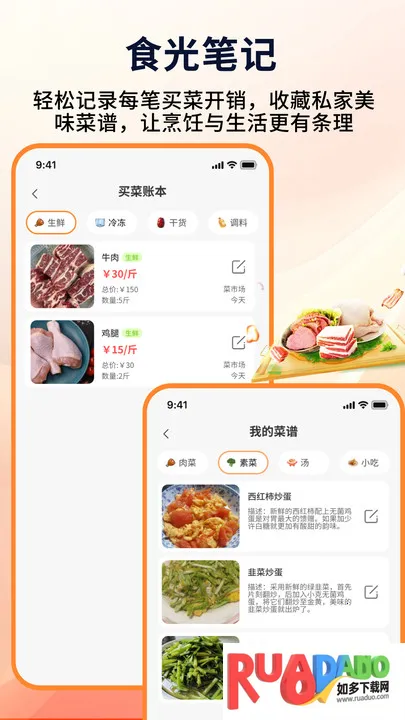 1、覆盖多场景,助力从买菜到烹饪再到记录,让美食生活更有条理,无论是新手还是小白都能快速上手。