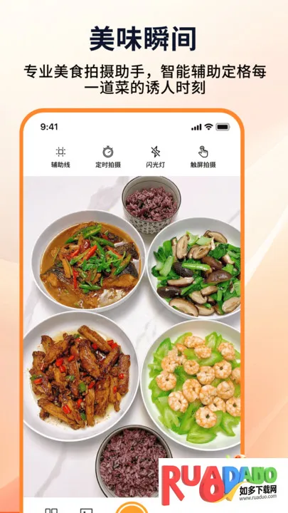 1、智能拍摄辅助:具备辅助线、定时拍摄、闪光灯、触屏拍摄等功能,能智能辅助定格每道菜的诱人时刻,满足专业美食拍摄需求,让美食照片更具质感。
