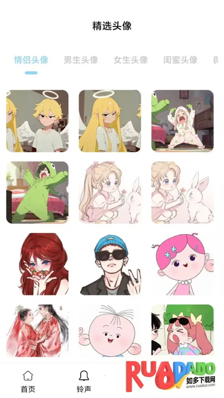 3、头像齐全:素材涵盖情侣、男生、女生等主题,包含卡通和真人素材,分类细致,满足不同用户在社交平台的个性化需求。