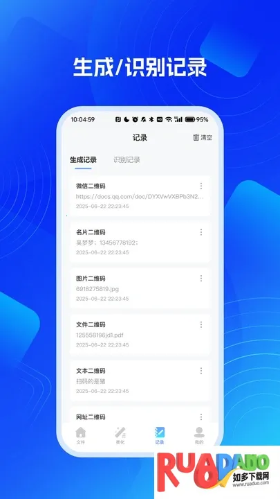 3、记录保存完善,扫码结果自动留存,生成的二维码记录也会保存,拥有生成记录和识别记录,可随时回溯查询,确保重要信息不丢失。