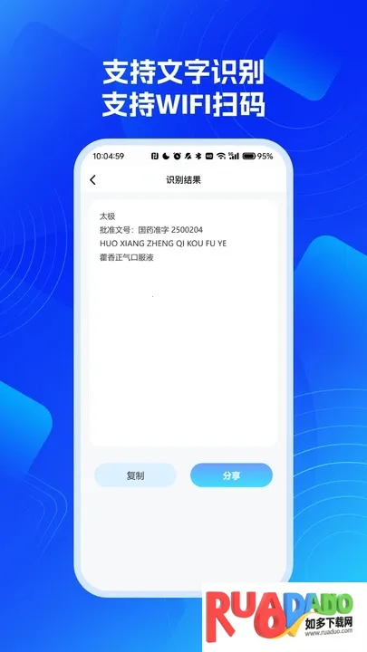 2、适用场景广泛,支持二维码、条形码等主流码制,还支持文字和WIFI扫码识别,从名片、网址到图片、文件、文本等多种类型二维码都能生成与识别。