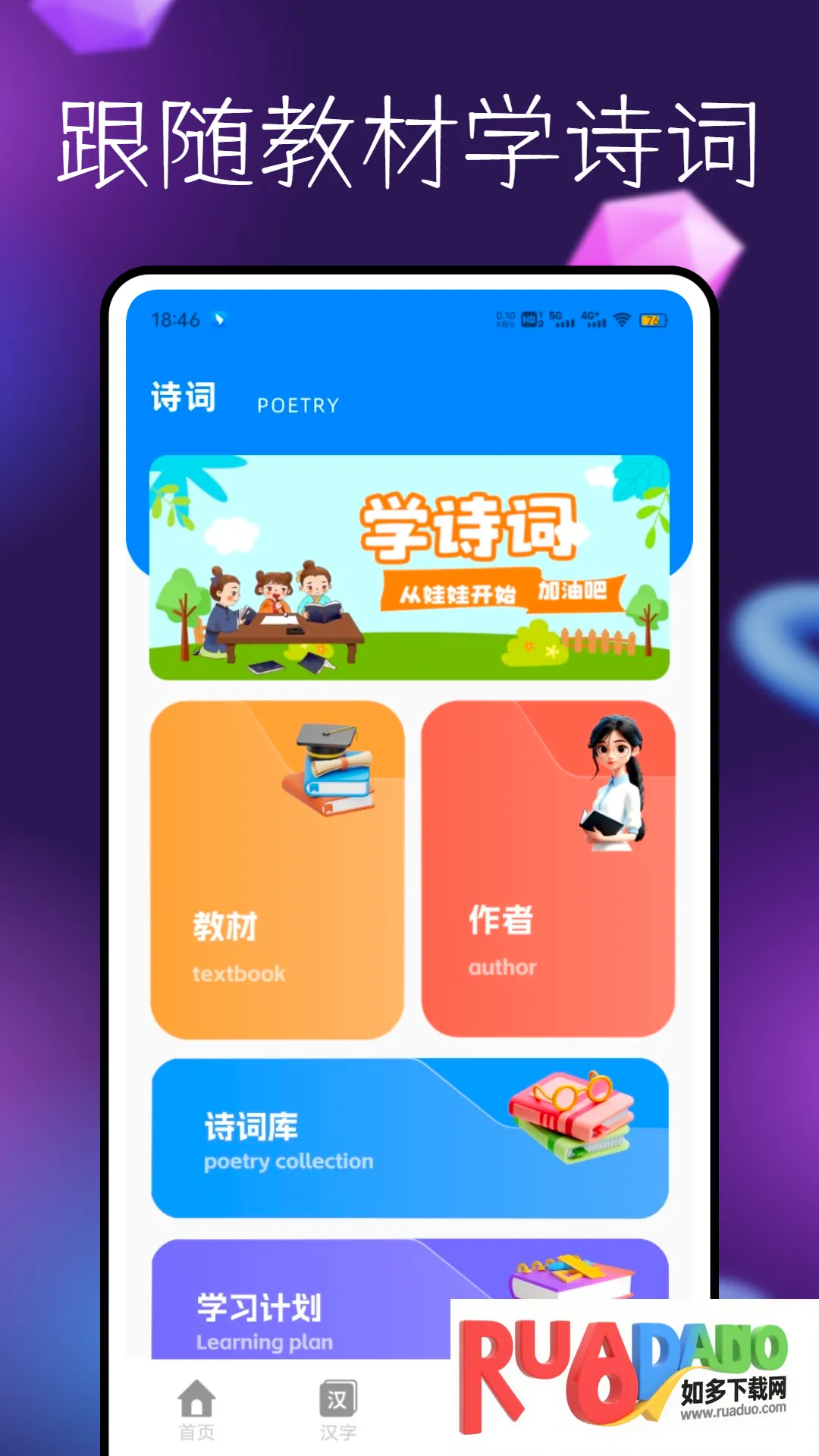 1、全面覆盖:从拼音点读、汉字学习到诗词文化,涵盖汉语学习多个方面,诗词里的教材作者等资源也一应俱全,形成一站式学习路径,满足从入门到提升的学习需求。