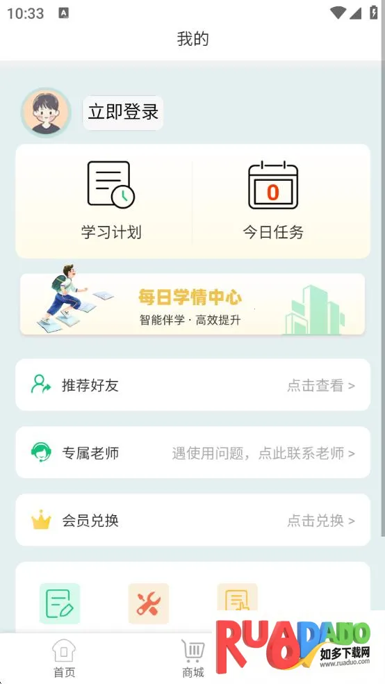 4、支持制定学习计划、查看今日任务,通过每日学情中心了解学习情况,还有专属老师提供使用问题解答、会员兑换等权益,为用户提供全方位学习保障。