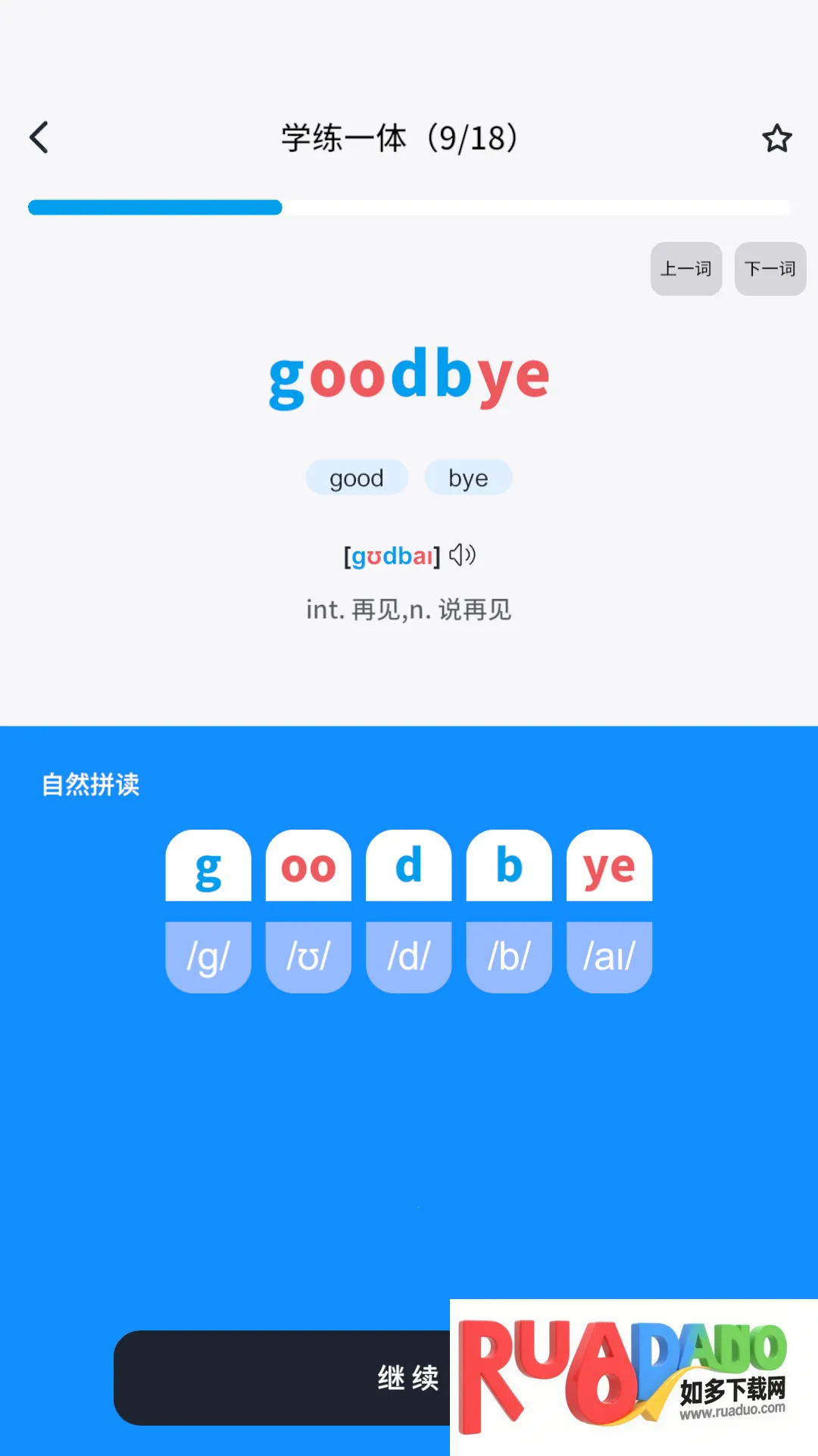 3. 学习与练习衔接紧密,将单词拆分讲解自然拼读并配备练习,能帮助用户快速掌握单词发音和含义。