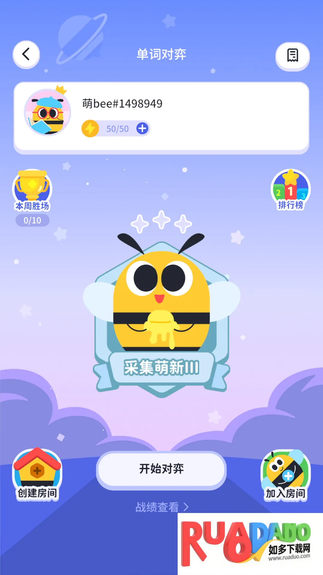 2. 它能有效提升学习积极性,通过单词对弈的竞技模式,让用户在比拼中提升学习单词的热情,还可查看本周胜场和排行榜,增加学习成就感。