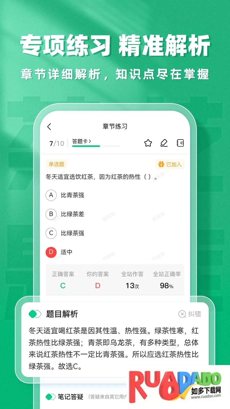 4、满足不同需求:涵盖初级、中级、高级茶艺师不同等级备考资源,功能多样实用,从刷题、错题管理到数据统计,全方位满足备考需求,解析精准详细,能帮助快速提分。