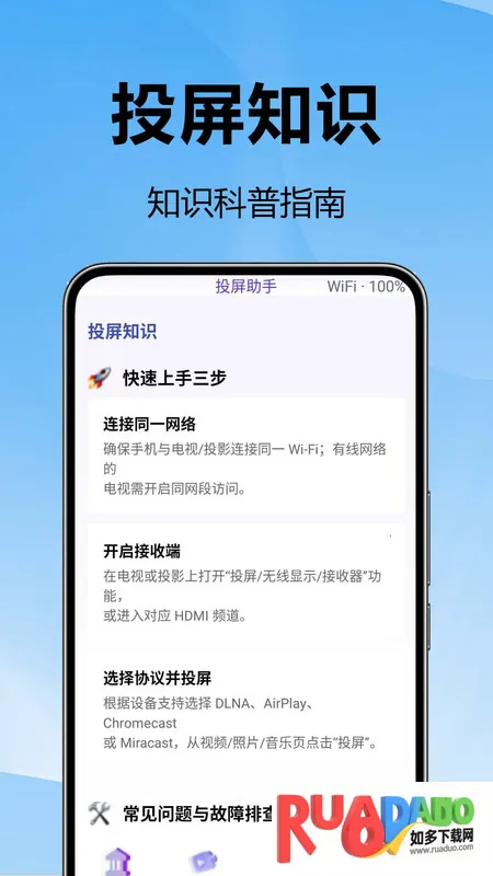3、内置丰富投屏知识,可让用户更好地了解投屏原理,提升使用体验。