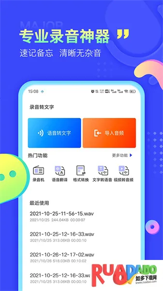 1、操作便捷,无需手动整理,上课、开会、采访时能快速将语音转化为可编辑文字。