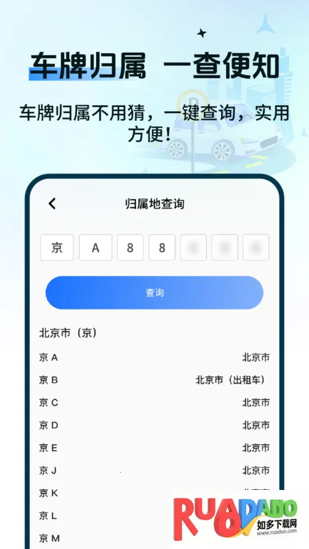 2、归属地查询 十分便捷,车主能快速了解车辆来源地,让停车或处理事故时的沟通更顺畅。
