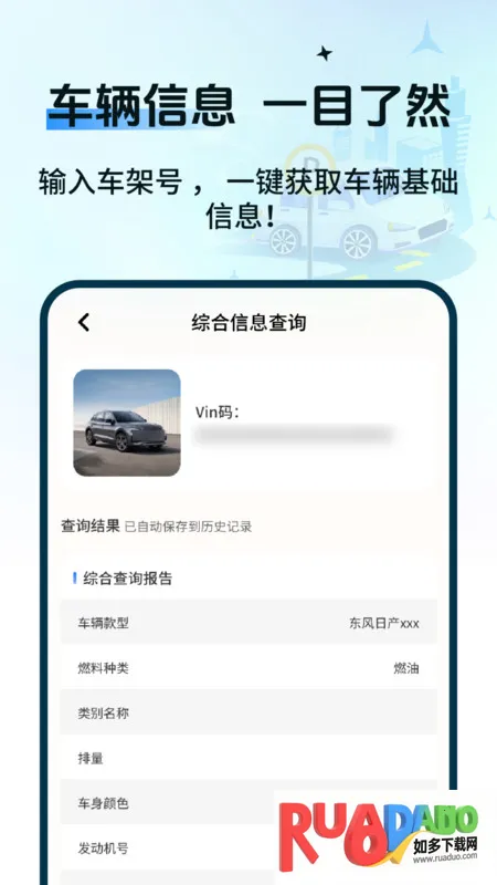 3、车架号查询 可提供车辆综合信息,在二手车交易和维修场景中,帮助用户轻松了解车辆底细。