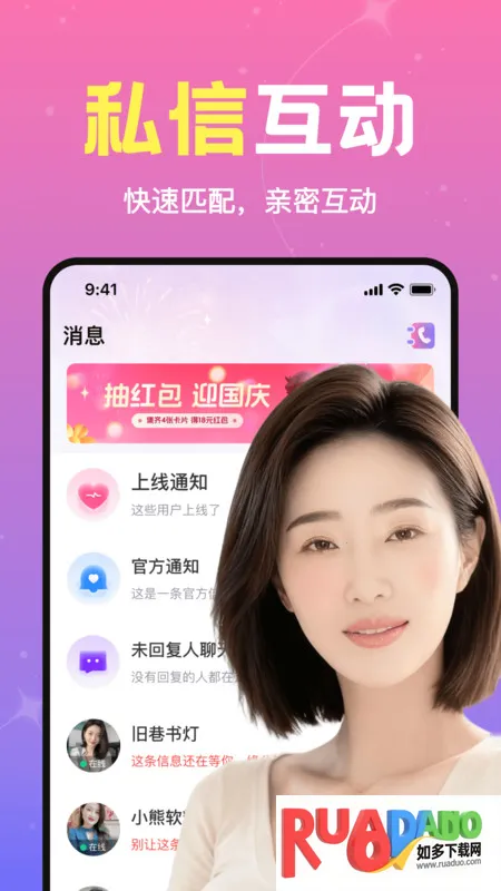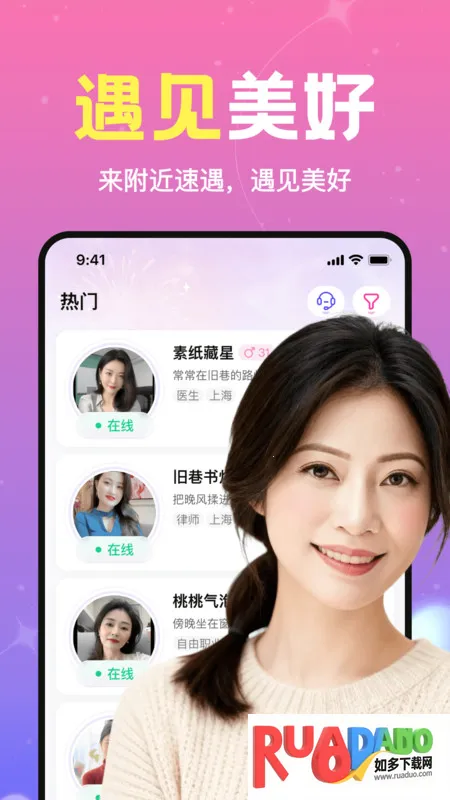 1、附近速遇2025能让用户随时进入,专注邀请有趣朋友在线,拓宽社交圈,沟通方式灵活,消息可直接发送无需等待,还能同步分享趣味表情。