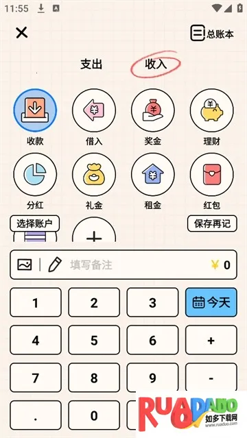 2、收支分类明确:常见消费类别如食物、交通、购物等已标明,直接在对应栏目输入数量即可。