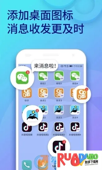 4、使用方便,可快速添加桌面图标,多开分身或双开的应用还能自定义图标名称,让生活工作两不误。