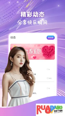 这里有大量来自全国各地的网友,能轻松找到附近的优秀异性,拓宽交友圈。用户不仅能实时关注他人动态、点赞评论,还能自定义编辑个人动态,分享生活趣事。聊天时支持语音通话、悄悄话、动画表情,交流方便又有趣。此外,除了传统交友方式,还设有兴趣小组和话题讨论等功能,满足多样化社交需求。综合来看,双悦交友App在同类交友软件中属于中高档次,能为用户带来优质的交友体验。
