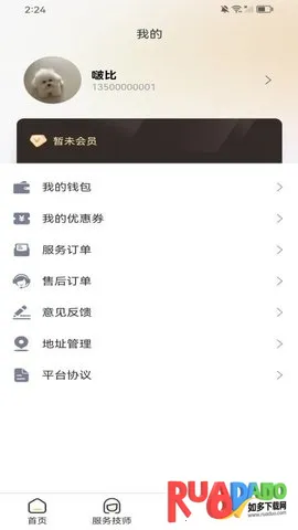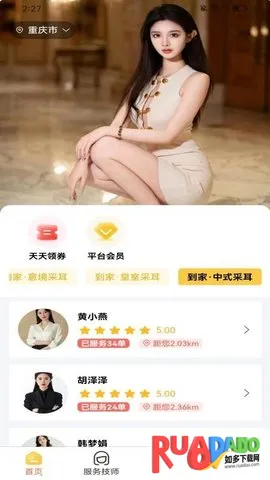 它功能丰富,在服务列表里能找到合适项目;可在线切换位置查找附近技师;还能天天领券,开通会员享受专属特权和福利。有服务订单管理功能,能随时掌握技师服务进度,内置钱包可查看账单。