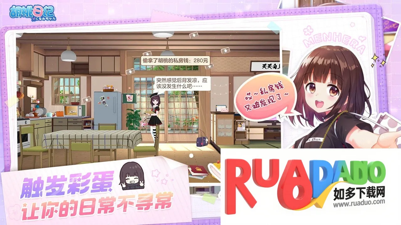 1、互动惊喜多:与胡桃进行点戳、聊天、投食等互动,随着羁绊加深,她会打工赚钱、相约旅行、比拼游戏,你永远猜不到她的下一个举动。