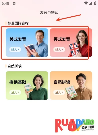 3、口音训练:用户可根据兴趣自由选择不同类型的口音,如美式发音、英式发音等。