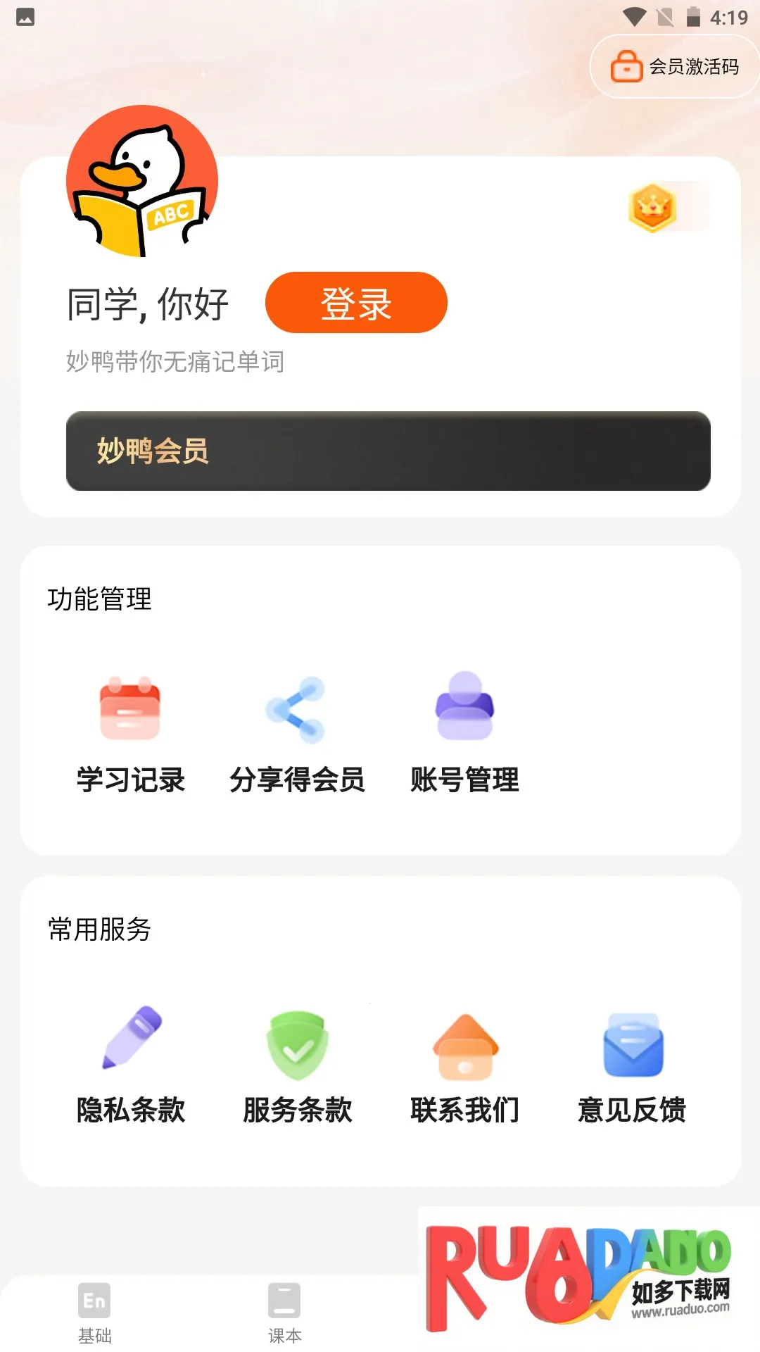 妙鸭单词是一款英语学习软件,提供丰富课程助用户掌握外语、增加词汇量。有拼读训练、词根解析等功能,还能选口音训练、做练习。零基础或有基础者都适用,界面小清新,助你专注学习。