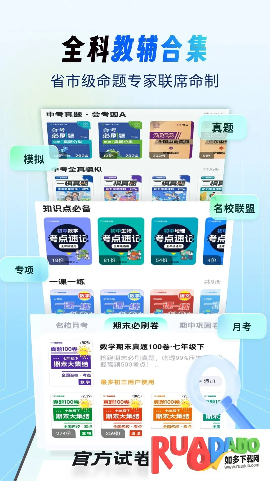 1、资源丰富:软件内有来自全国各地的试卷,题库充足,包含所有初中学习科目,能满足不同需求。