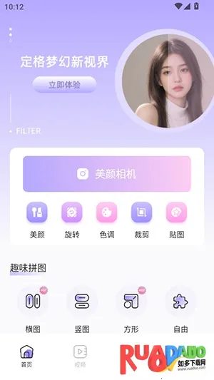 3、多种功能供用户选择,可微调裁剪图片、进行视频拼图、使用滤镜等。完成修改或调整后能直接导出保存到相册并分享到其他平台。