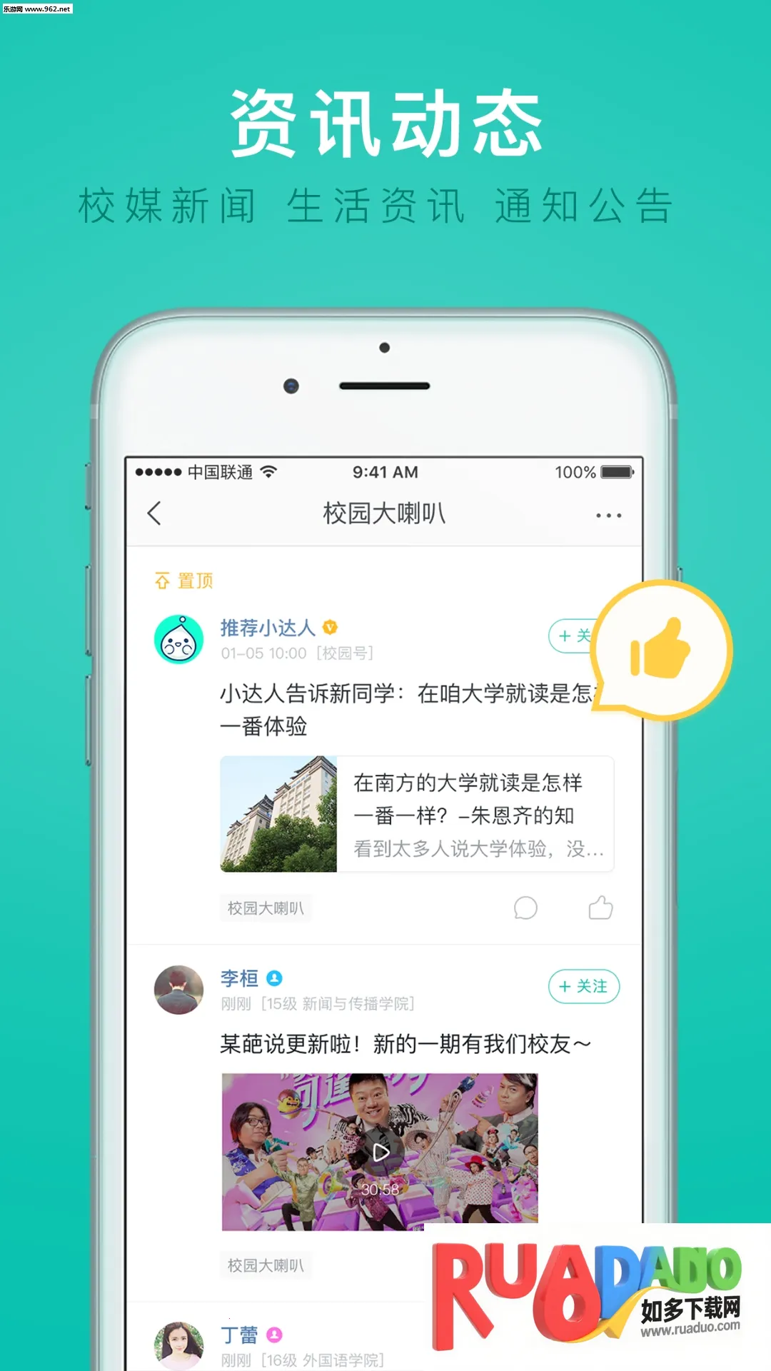 1、资讯丰富:可随时查看校内多种信息,如校园风光、新闻动态、学术讲座、招聘信息、班车时刻等。