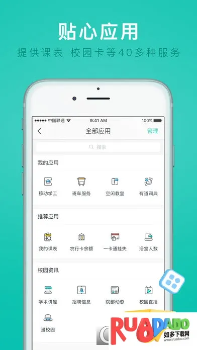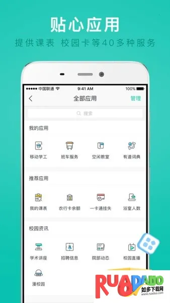 3、功能丰富:涵盖30余种实用校内应用,涉及学工、教务、生活等多方面。