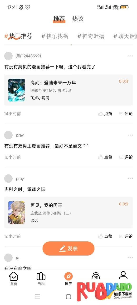 软件功能强大,有强大的搜索引擎,能让你快速找到目标漫画,还能收藏到个人书架方便后续阅读。它提供多种阅读模式,像页面滑动、卷轴翻页等,能适配不同阅读习惯。还支持社区互动,你可以对漫画评论评分,和其他爱好者交流心得。