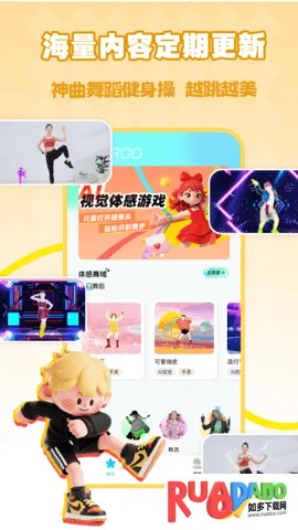 2、游戏多元:涵盖运动竞技、舞蹈节奏、健身训练、冒险解谜等多种游戏类型,能满足不同用户的游戏需求。游戏过程中还可实时监测运动数据,包括动作标准度、消耗卡路里等。