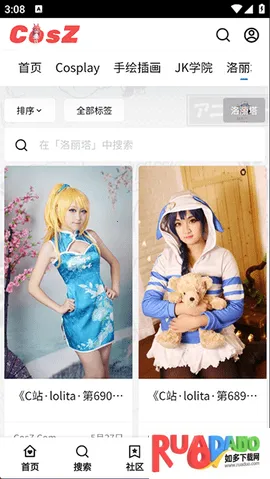 3、社区有多个特色分区,如展示Cos作品、交流手绘插画、互动JK文化、分享Lolita穿搭和国风汉服等。