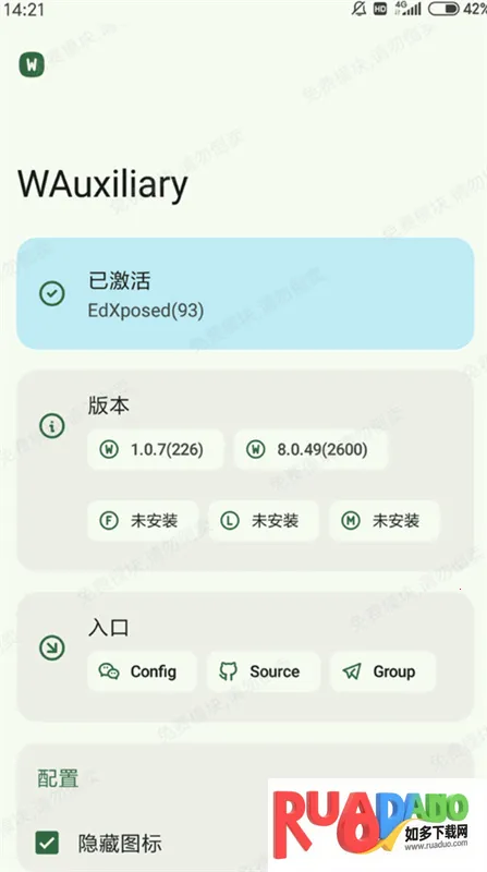 WAuxiliary安卓版是基于XP框架的辅助软件,需手机Root并安装Xposed Framework。功能丰富,有虚拟定位、阻止撤回等,操作简单易上手,兼容性强,支持多版本微信,还能免费畅享多样社交管理功能。