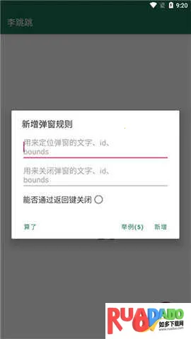 这软件使用方法简单。首次用需自定义开启无障碍服务权限,依次点击:无障碍、已下载的应用李跳跳,然后确认开启。开启后进入首页,点击设置,选一款应用,自定义新增弹窗规则,设置定位和关闭弹窗的文字idbounds等信息,选好能否通过返回键关闭,点确认就行。