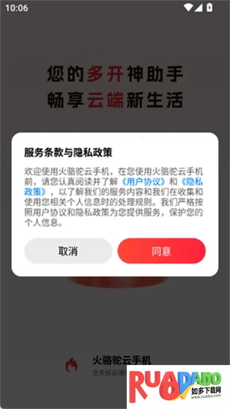 火骆驼云2025最新版本是一款云手机软件,采用全新云技术,流畅度高。具备多重优势亮点,如安全保障、不耗本机资源、多开管理便捷等,支持多设备连接,适配性强,能带来丰富娱乐体验。